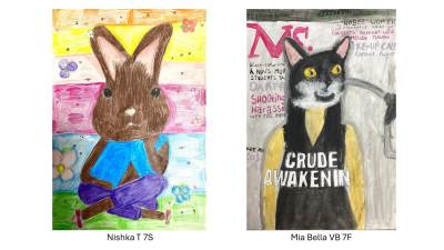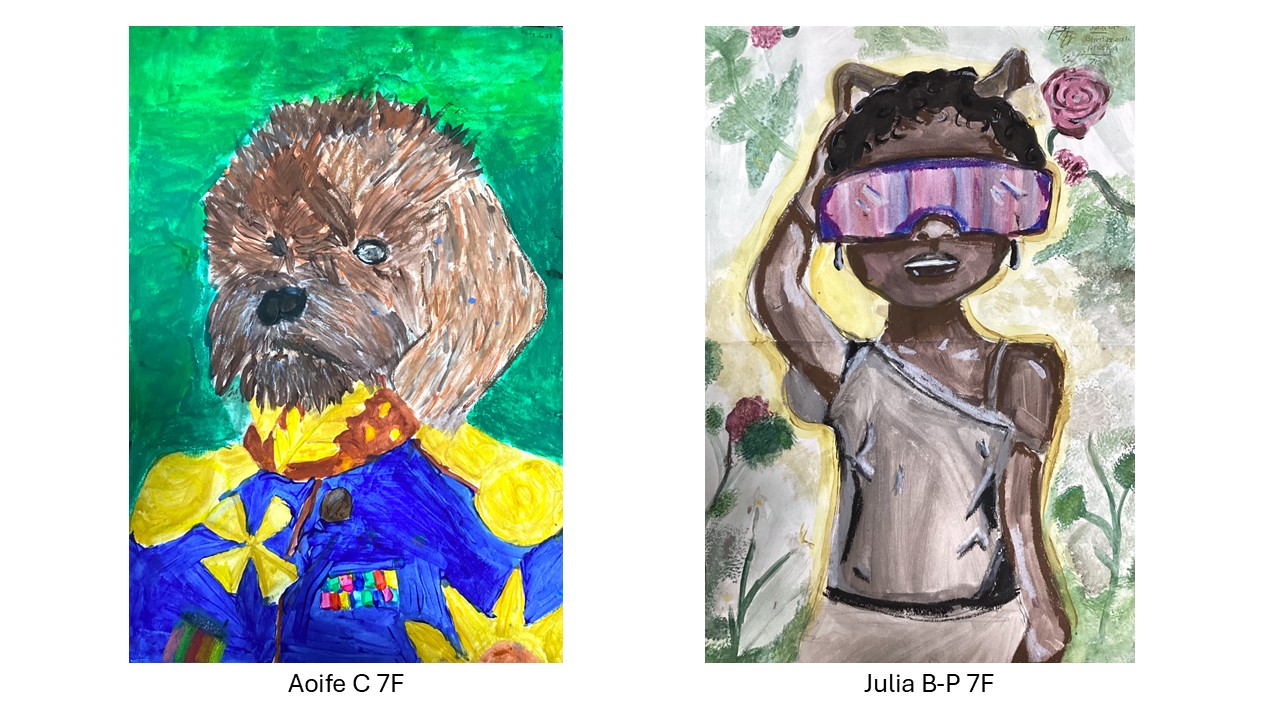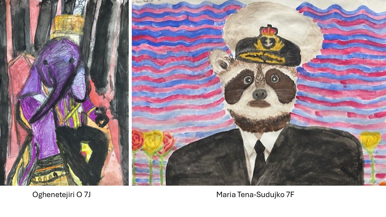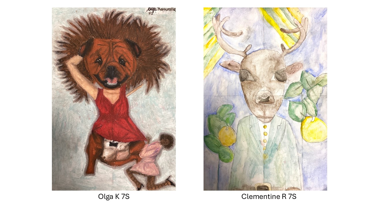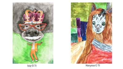 Year 7 recently completed Humanimal portraits based on their own collages which combined human and animal features in a variety of ways, some of which display a fantastic sense of humour and are wildly imaginative.