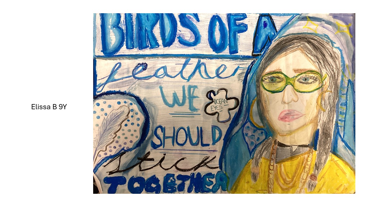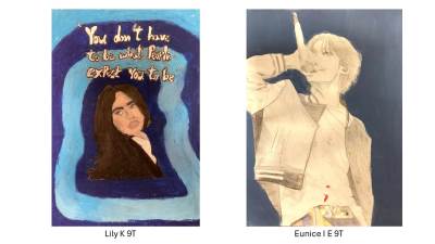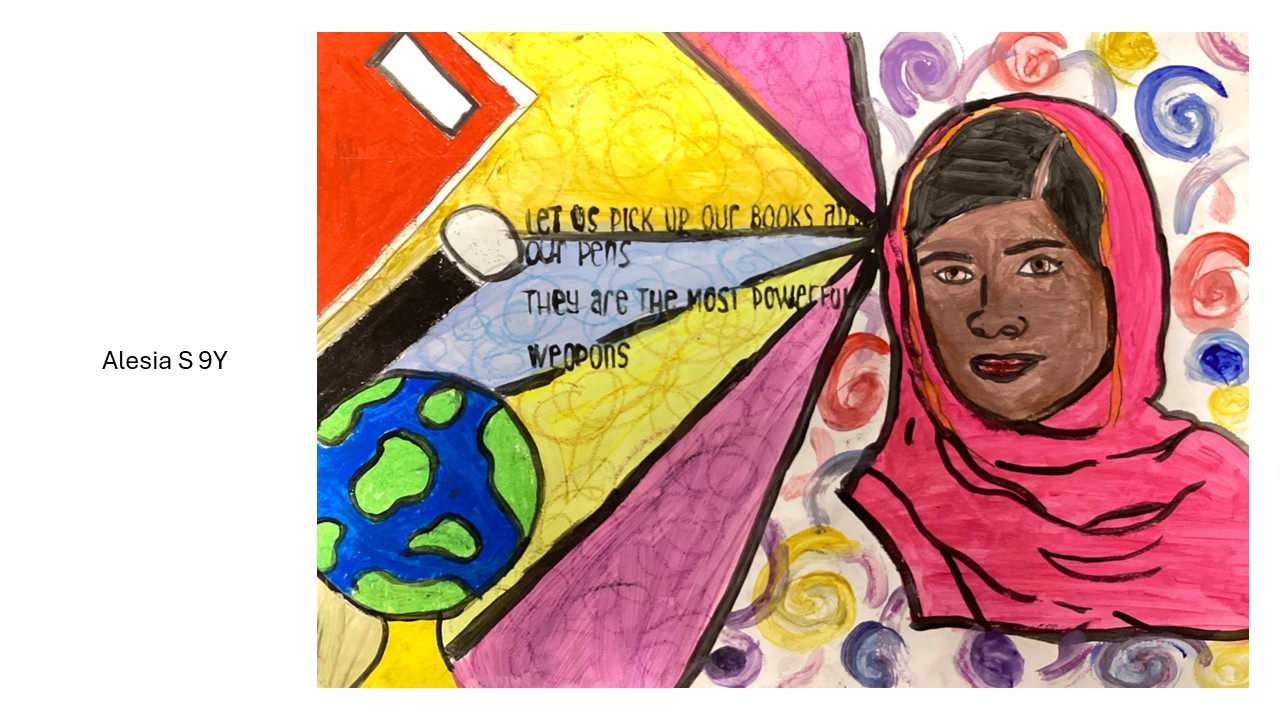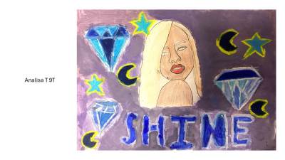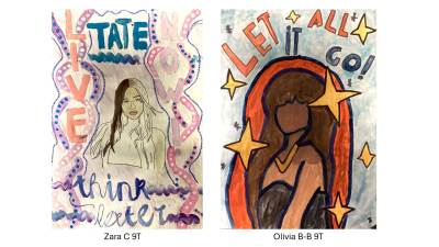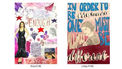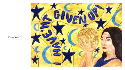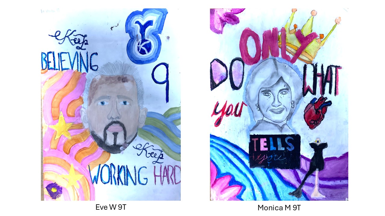 Year 9 students created an amazing range of posters on a new Homage to my Hero project which focused on their personal choice of hero or celebrity and an inspirational message. It was fantastic to also see students incorporate pattern using sgraffito and wax resist techniques in their designs. Can you spot Malala, Elizabeth I, Helena Bonham Carter, Princess Diana or Drake in the below examples? From a teacher's perspective it was quite humbling to learn about the incredible knowledge students have of popular celebrity culture and the project was mutually educational at times! We hope you enjoy looking at the results of their hard work.