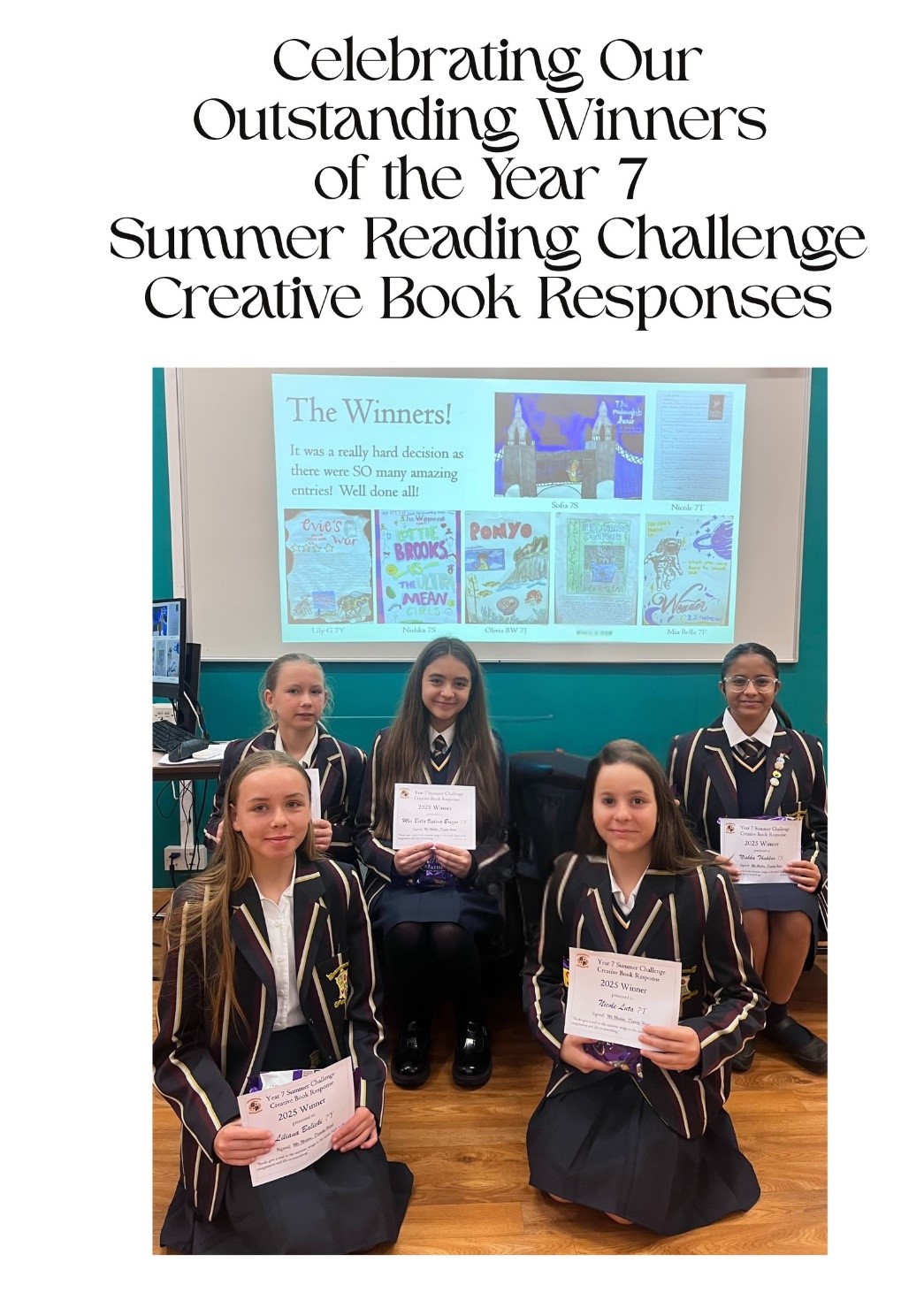 Seven talented pupils in Yr7 were presented with their certificates and chocolates in recognition of their winning entries in the Creative Book Response Summer Challenge. This work was completed over the summer holidays before pupils even joined the school! There were many entries, and the standard was very high.