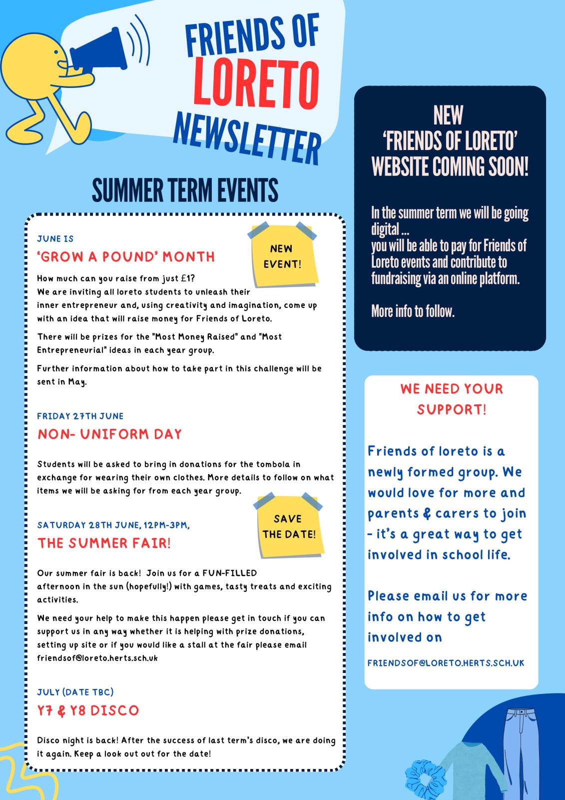 Friends of Loreto is a newly formed group. We would love for more parents & carers to join - it’s a great way to get involved in school life. Please email to find out more:
