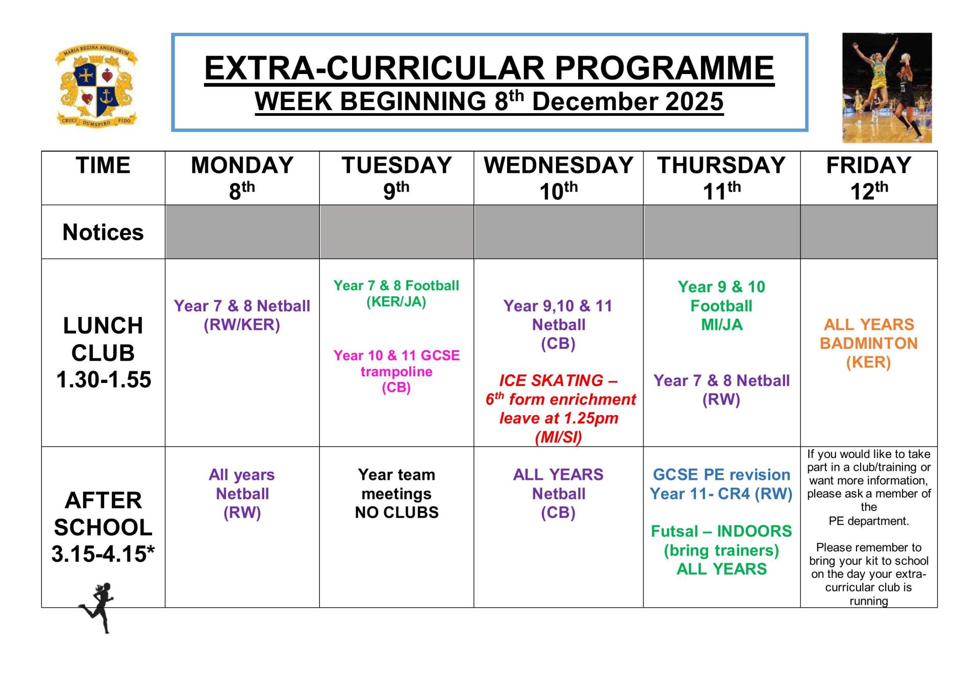 PE Clubs & Fixtures