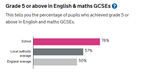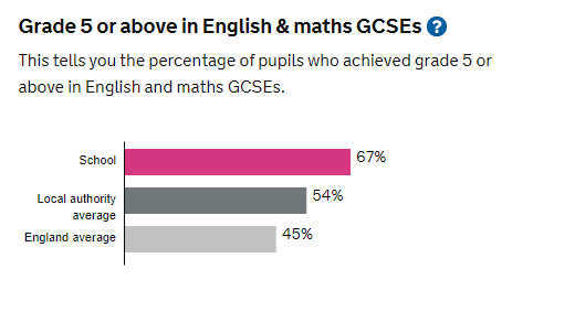 - 68% of students were awarded at least 5 GCSEs at grades 5+ including Maths and English.
