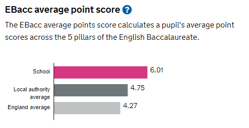 - 89% of GCSE grades achieved were at 4 or above.